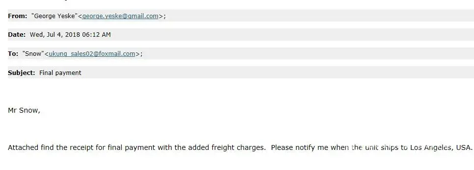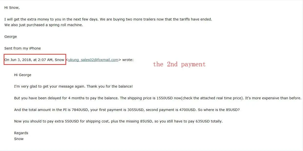4. Mr.George get long time delay, and the shipping price had changed, then he paid for the extra shipping cost on 4th Jul 2018, see the attached picture "time of 3rd payment"