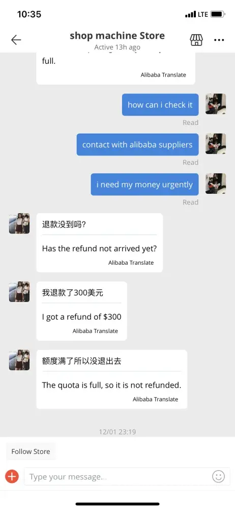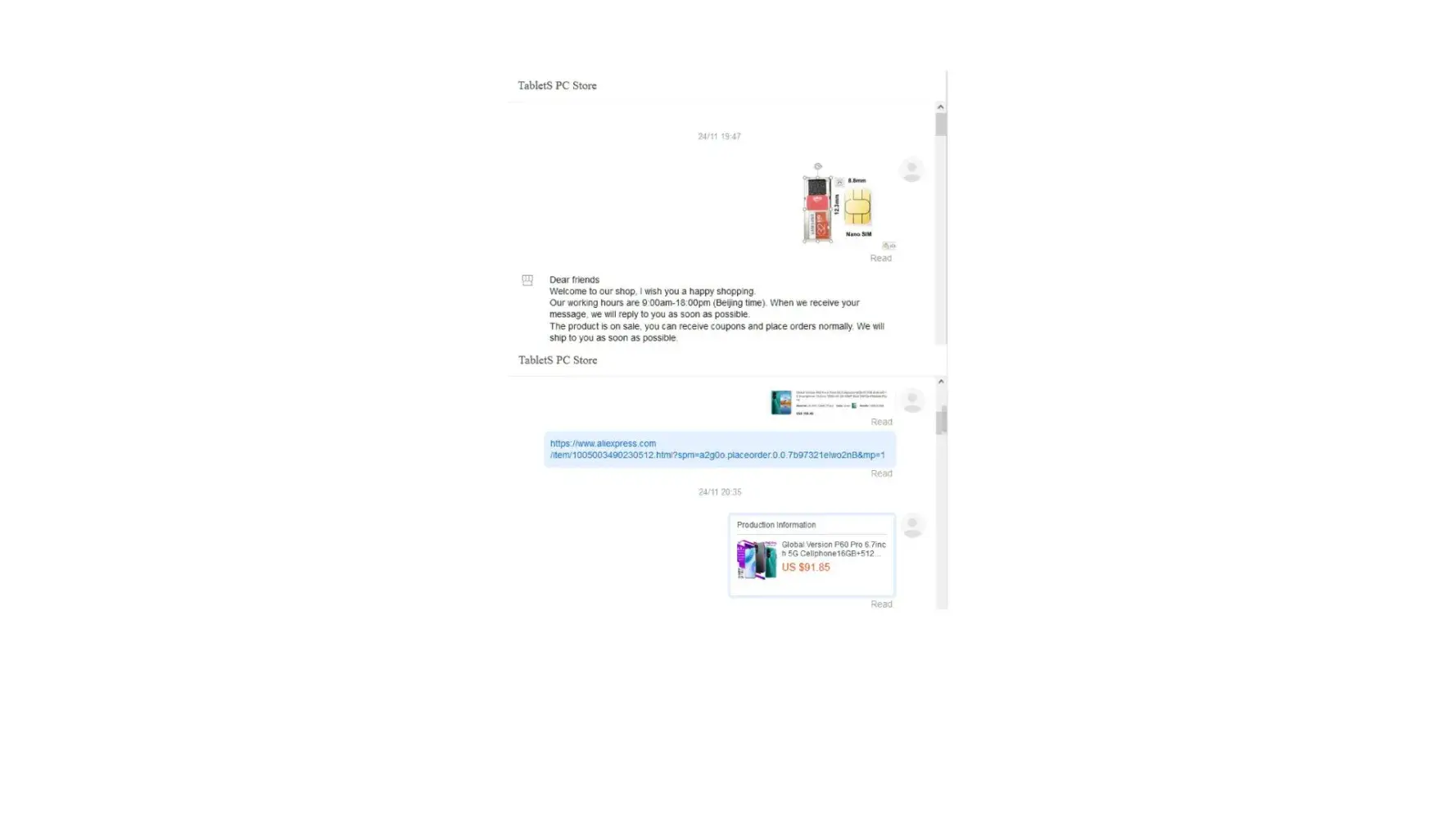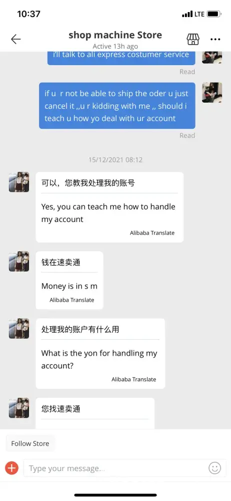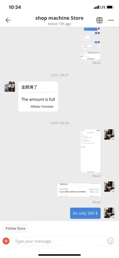 When I checked in my account in Aliexpress, I saw strange conversation between the Seller (store) and client (hacker).
