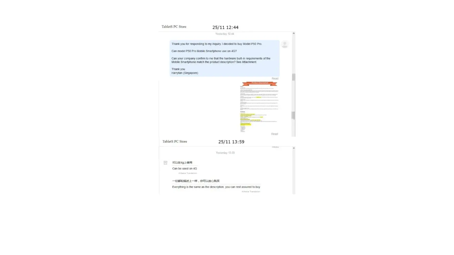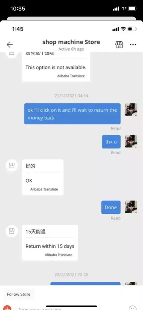 Can’t agree to and accept the statement that AliExpress replied on Mon 12/13/2021 9:06 AM & 9:16AM respectively.