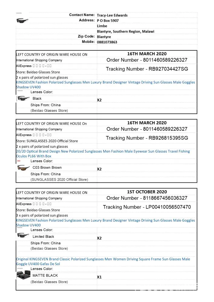 Order number [protected] March 2020 Tracking #RB927034427SG