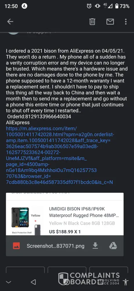 Dm verity corruption. This means there is a defect not caused by me. Start up it just shuts off this Hillary refuses to issue refund ship the item back to China first then I have to wait for it to be repaired and get back to me and that is a reasonable for me to have to wait 3 or 4 without a phone. Or partial reimbursement so that I can fix it here in the United States. Alibaba is not helping humidity is not helping and the seller is raping me.