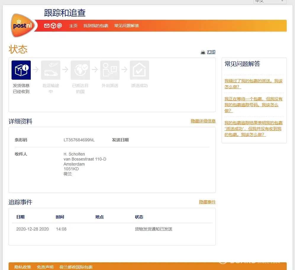 Product is claimed to be delivered but is never send according to the shipping company.