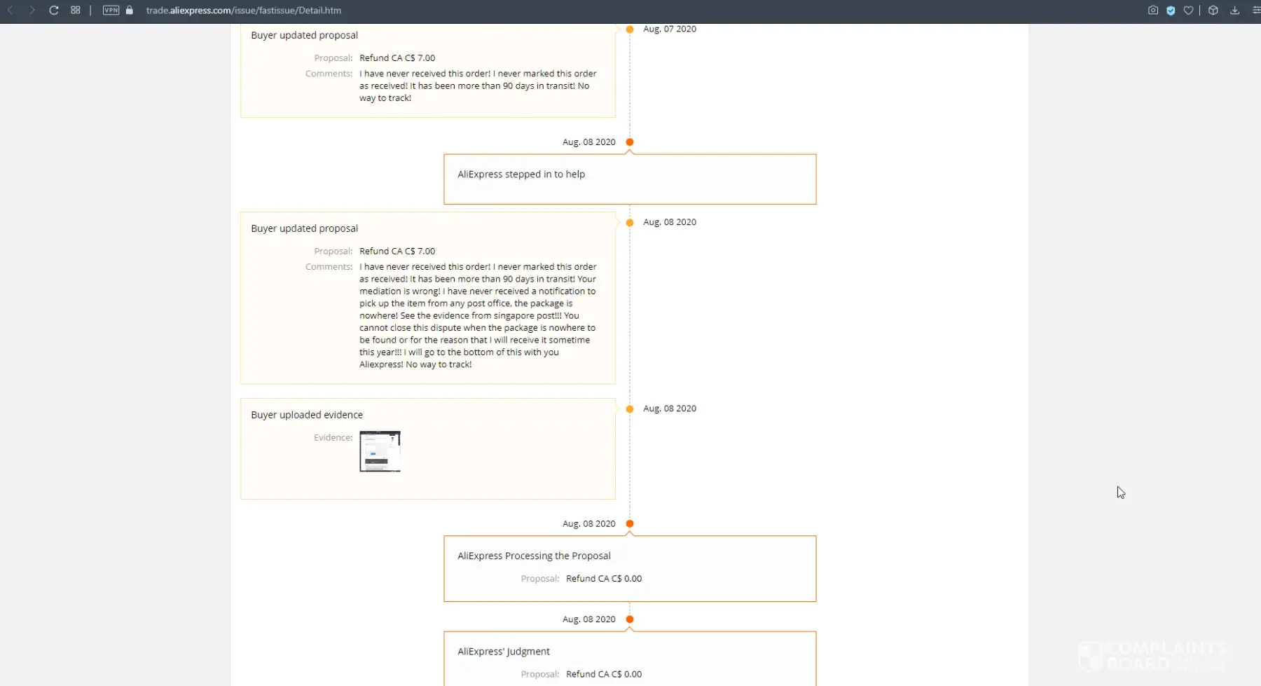 Aug. 08 2020 - AliExpress refuses refund - reason - package is at post office and I should go and pick up but no indication of which post office.