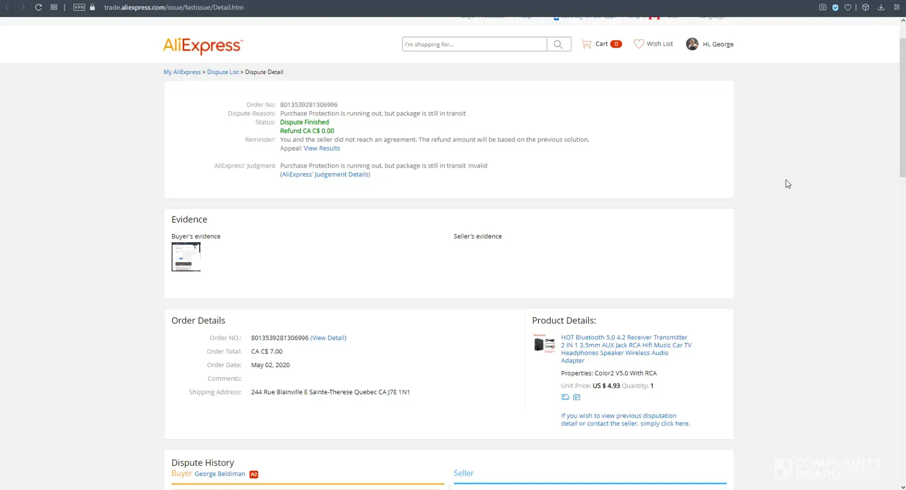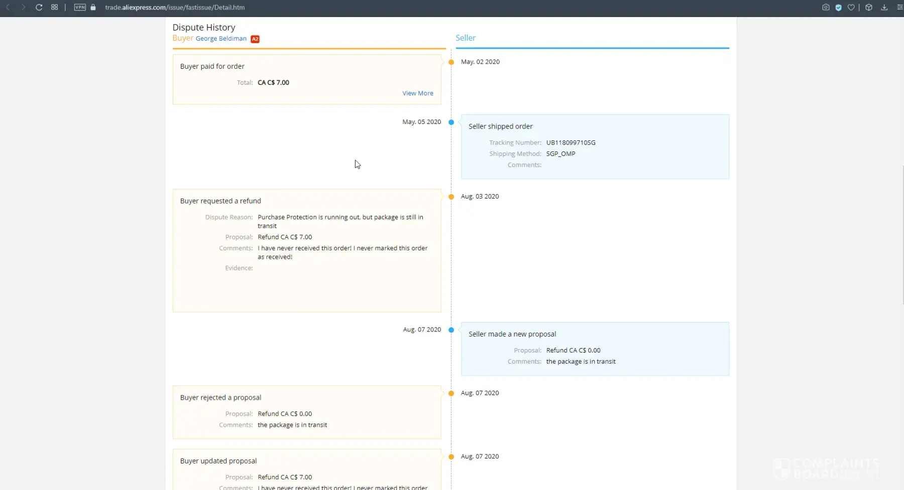 Aug. 07 2020 - seller refused refund - reason - still in transit