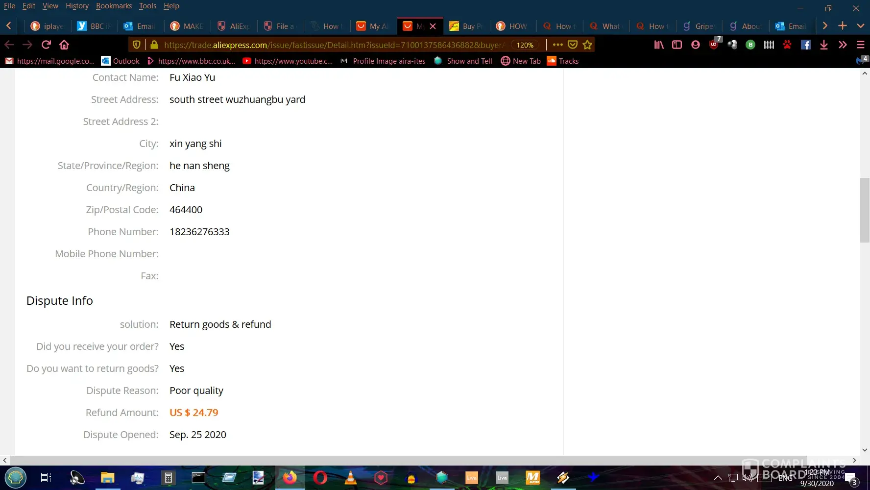 D: Ali express phone number is in China, and too expensive to call, apart from the likelihood of time i'd waste getting througyh to the right departments of a culture who may not understand my Scottish accent at all!