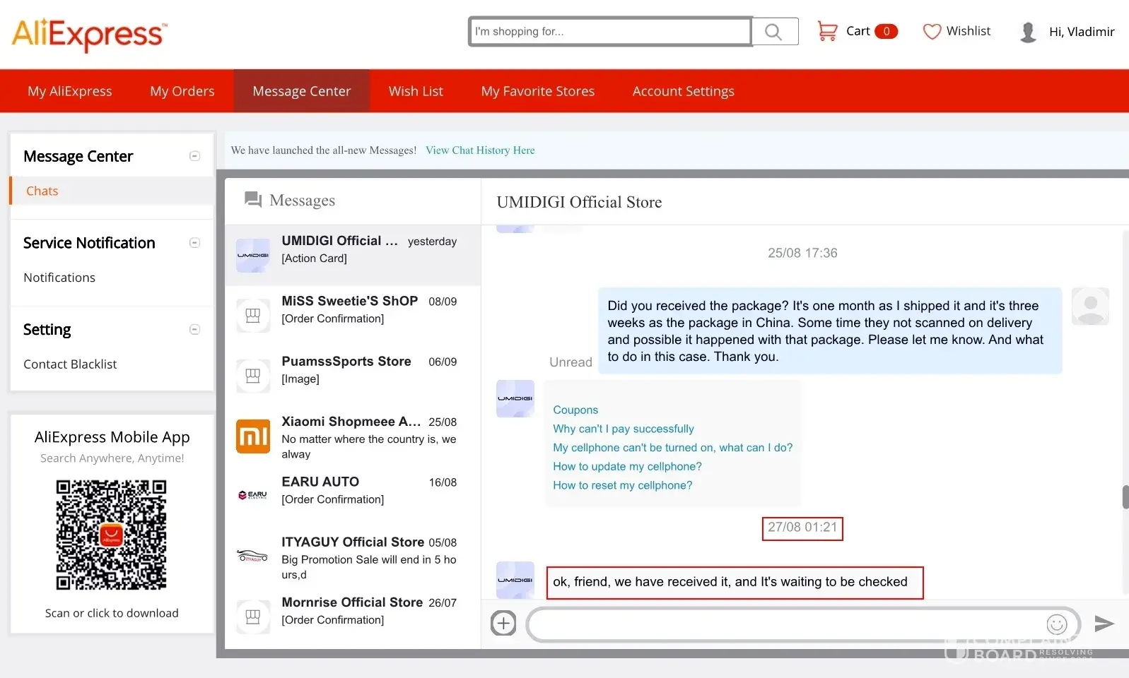 But seller agrees to accept goods back and provided me with address. Third month started since I shipped the phone back: tracking number: UH025787827US still shows that the parcel is in transit, but the seller got it. I have a message that confirms that. But I can not get a refund. After received goods the seller stopped to communicate with me.