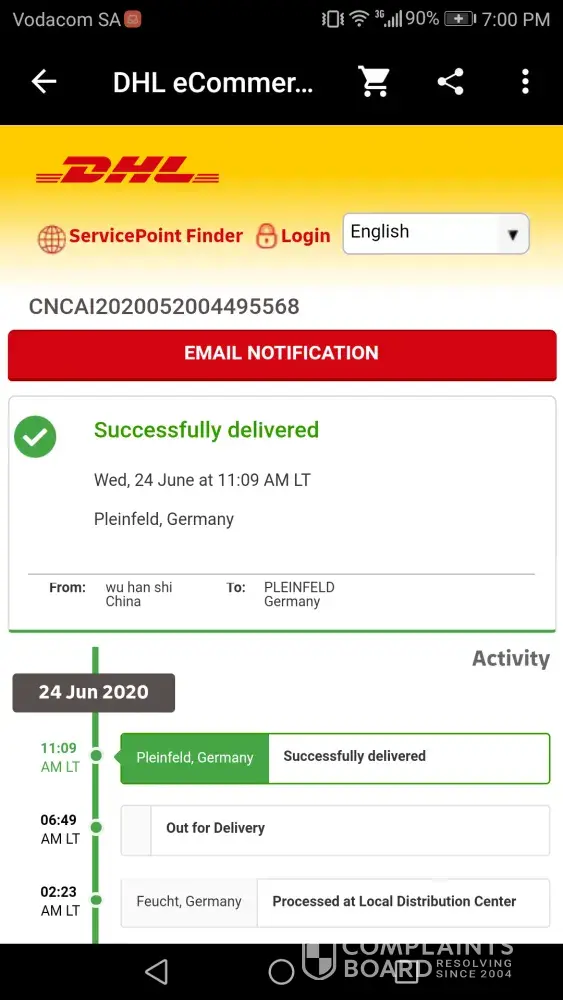 I have not received my order and it has been 5 months now, it says it was delivered to Germany pleinfield ... YET I AM IN SOUTH AFRICA. I placed the order on May and in June it was delivered to Germany and there after did not display the tracking info then all of a sudden it said delivered to Germany Pleinfield. Seller is not responding and even EVA does not respond to my query. I did lodge a dispute but cud not get assisted