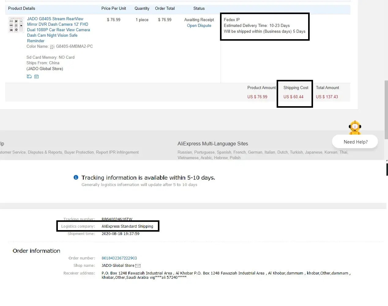 I Paid extra 60.44 USD for fast shipping in feedex but seller send in the normal aliexpress standard courier service(Free shipping ) already i tried to contact the seller more than 4time there is no reply from the seller i paid extra 90 % from the product (Product cost 71 USD) Please rsolve the complian
