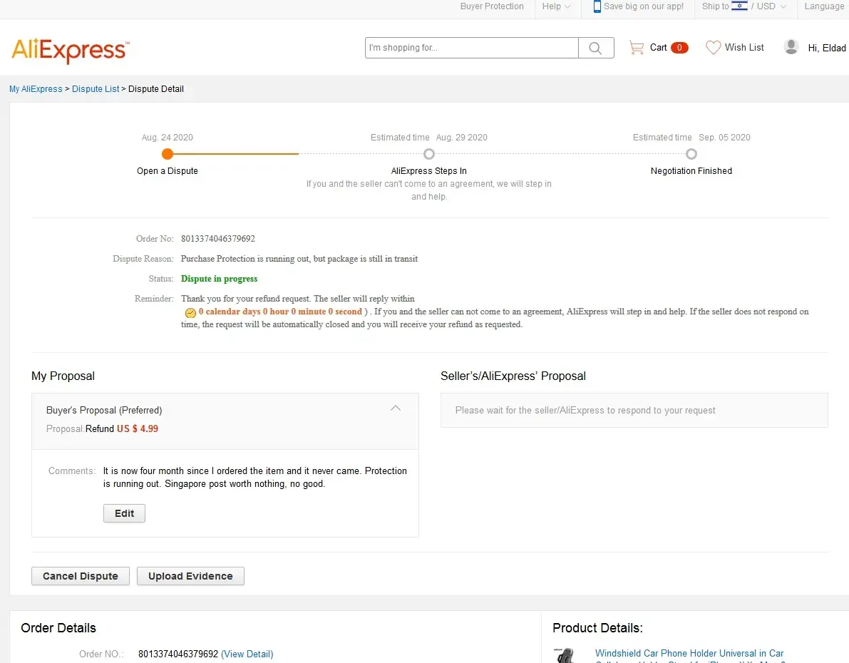 I asked my local post office for more information but they said that they could only do it if the seller send some documents as proof. I got tired of trying to talk to the seller, making a refund request, trying to contact aliexpress support. All of this was unsuccessful, and I strongly believe that my complaints were seen only by aliexpress bots.