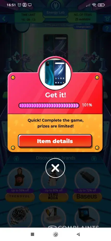 Well I am using the Energy Lab, I played for the UMIDIGI A7 Phone at 28-08-2020 I reached the goal 100000 and there where still 25 available but I cant claim the price! I also contacted the support service and they escalated the case [protected]) and should within 48 hear from them. Now [protected]) still no reaction, so I contacted the support service again and now the case is escalated again and so I need to wait again for 48 hours.