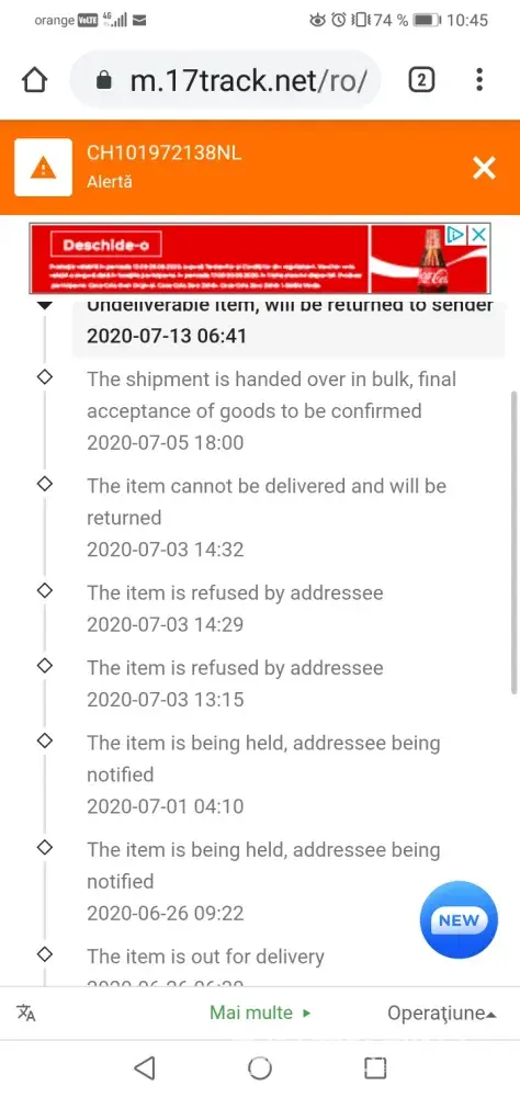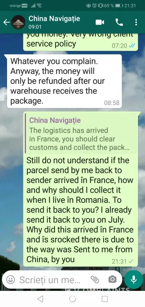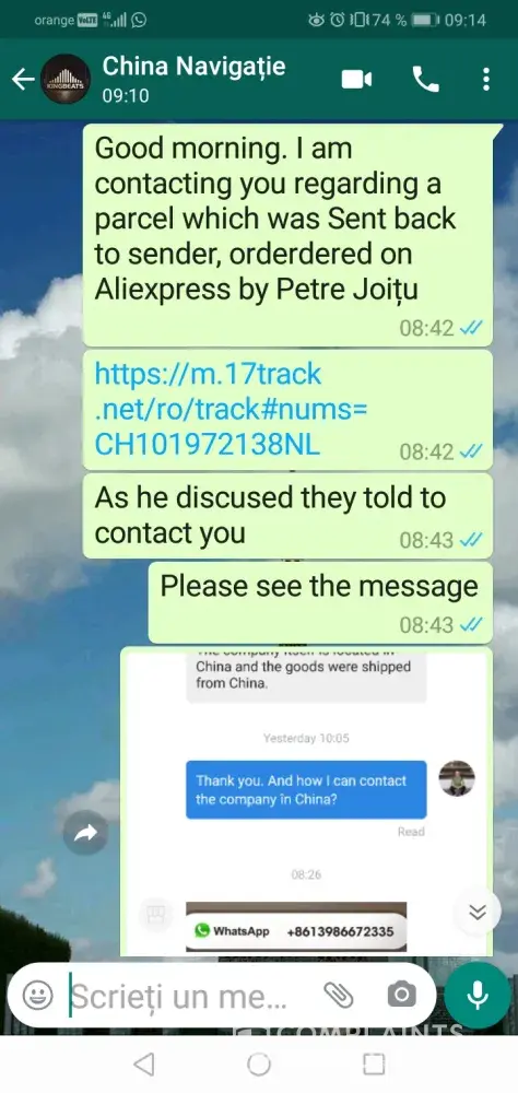 I gave them the tracking link but nothing îs solving. I told them that they should complain the local post, as îs on their delivery back to sender.