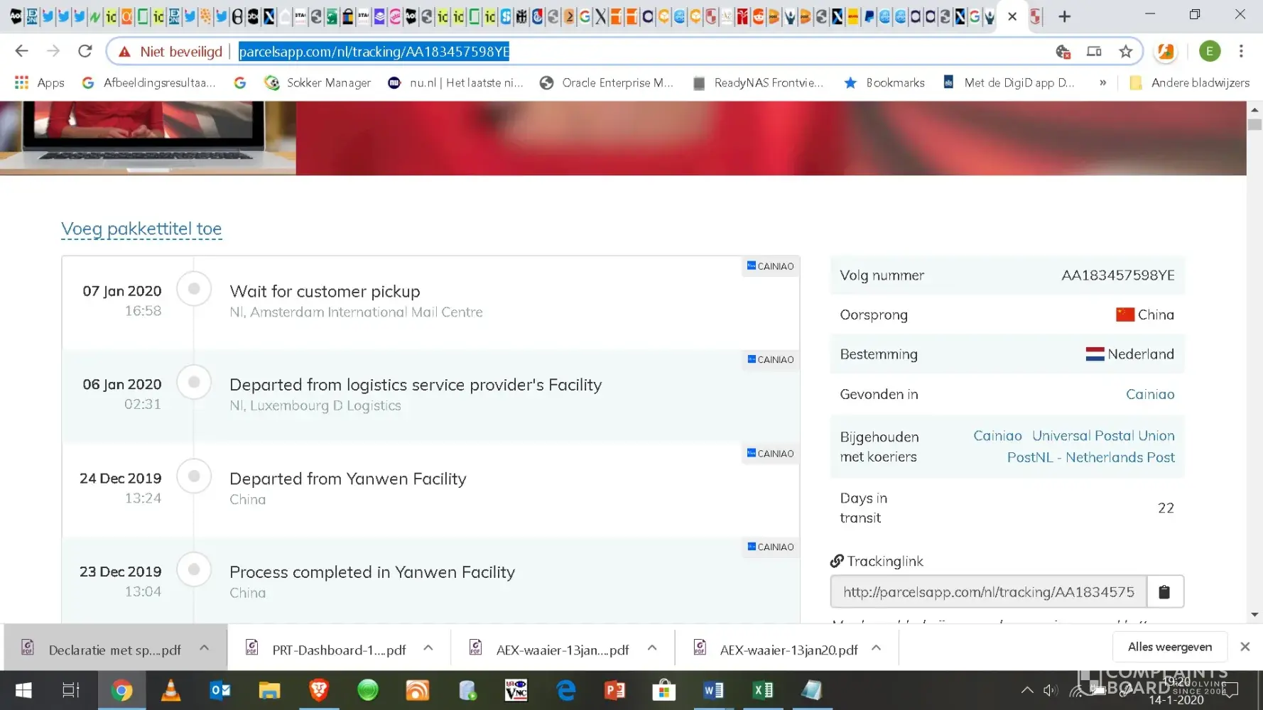 I did contact the Dutch postal service. They do not have the iten in their system. I am unable to pick it up.
