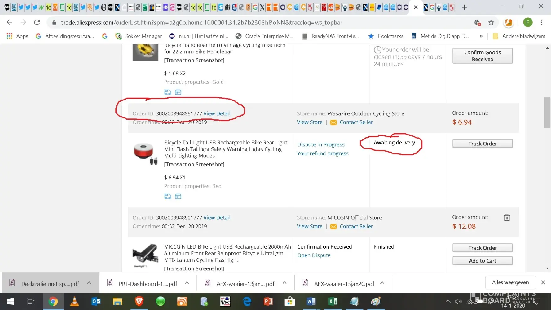 I want you to please check my orders. I have made one quite sometime for a battery and never recived it. I made an order fir a clinometer on the 20 th December 2019 payment was made it went of my card then the seller lets me know I must make a payment or my order will be cancelled. My email add is [protected]@gmail.com