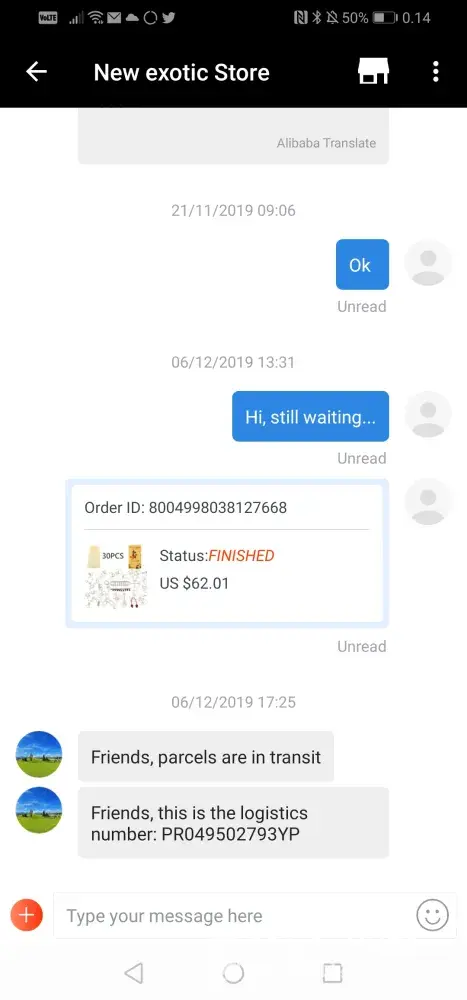 The store I have to complain about is "New exotic store". After waiting 3 months for the product, it arrived to Slovenia precisely when I was on christmas vacations so the post office send it back to the seller. I do not want a refund I want the product back because I need it. I tried to make contact with the store but they do not reply. I would like to talk with them because the purchase is really important.