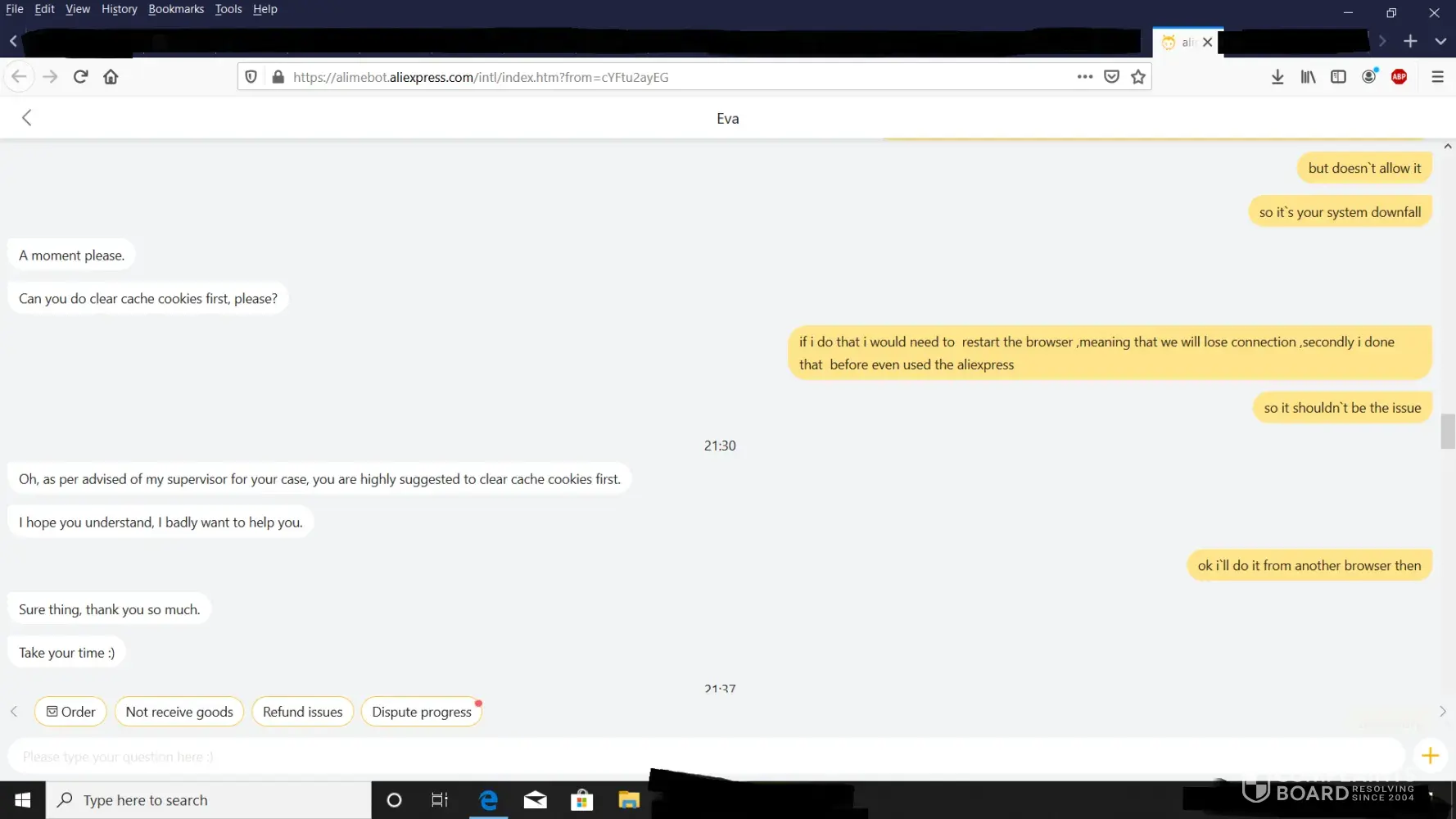 I haven't received an item and when I tried to open dispute I got that "patience message".