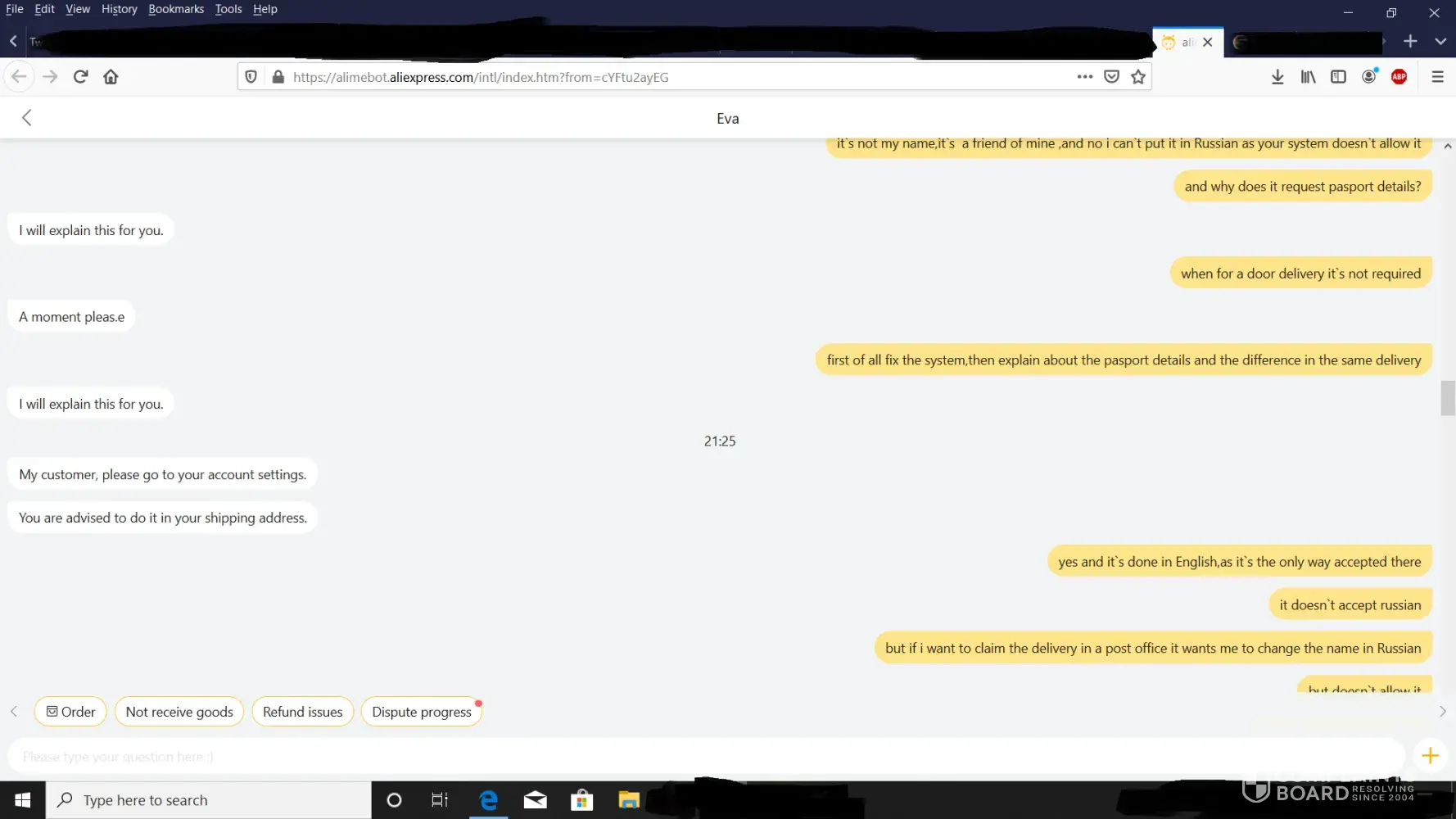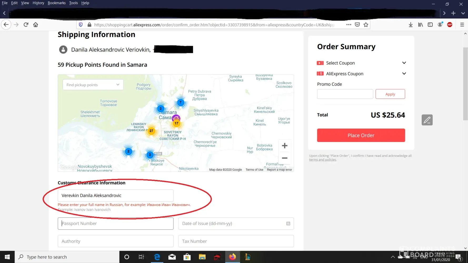The main account panel with all the addresses i may contain, is required to fill in in English specifically, when trying to order an item for my friend, not myself, im allowed to freely use the delivery option to the stated address, and if i choose the Self-Pick up option it states that i need to change the receivers name into Russian, but when you press "OK" and fill in the name In Russian it doesn`t accept it, stating to do it as in the example in English, which doesn`t work as well and isn`t accepted. So that`s one of the main issues, that the system doesn`t work properly for the Self-Pick up option. Futher more when you asked to change the name into Russian, besides the name, they are asking to fill in sensitive private information(ID information) which is unacceptable, since im purchasing it from my account where they already got my personal information, and asking me clearly sending an item to another person, for this persons sensitive information, which is totally unacceptable ! Since how would i manage to obtain another persons ID information, and how would that be legal? So this is totally not safe and very doubt the fact if it`s legal on Aliexpress behalf, to ask a customer to provide a totally random persons sensitive information!