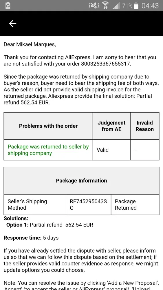 But unfortunately, Aliexpress keeps rejecting my dispute. They have failed to ask Home Trends for any proof or evidence of shipment to my address/name or delivery. They have even gone ahead and released the payment!