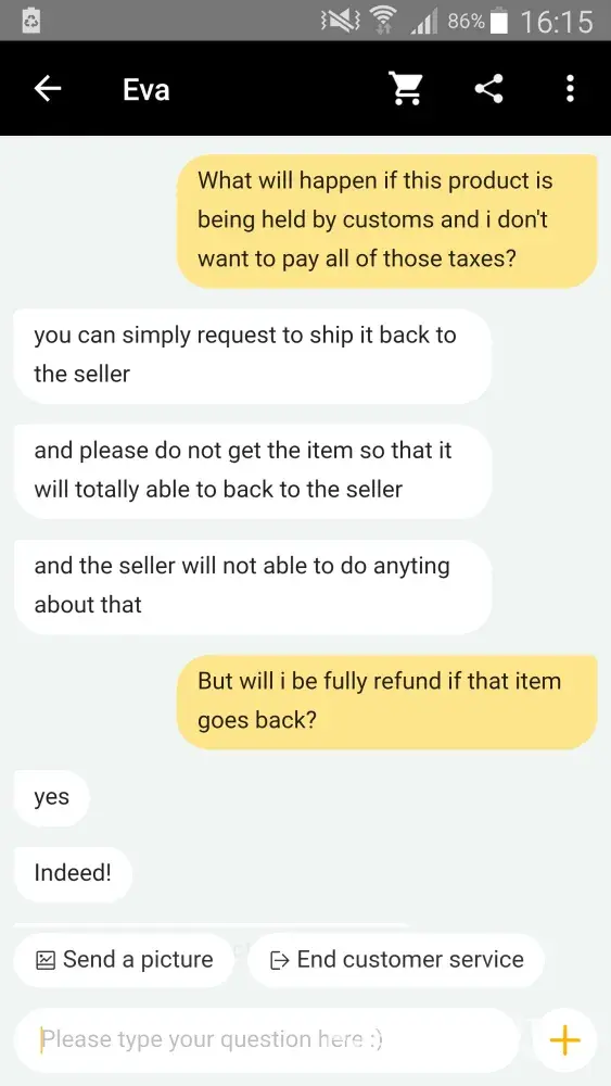 The AliExpress website is totally useless when it comes to customer service as all questions are dealt with using AI.