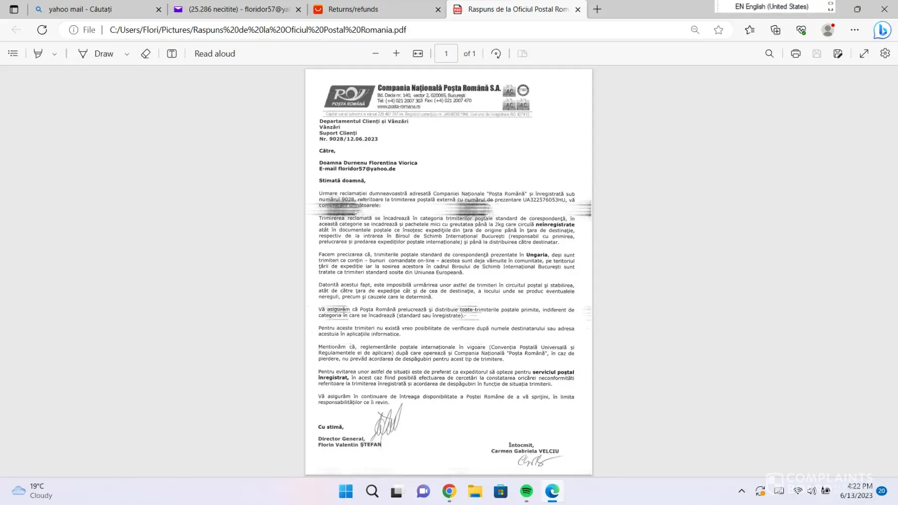 The letter explained that they were not delivered TO ME and why I am entitled to a refund.