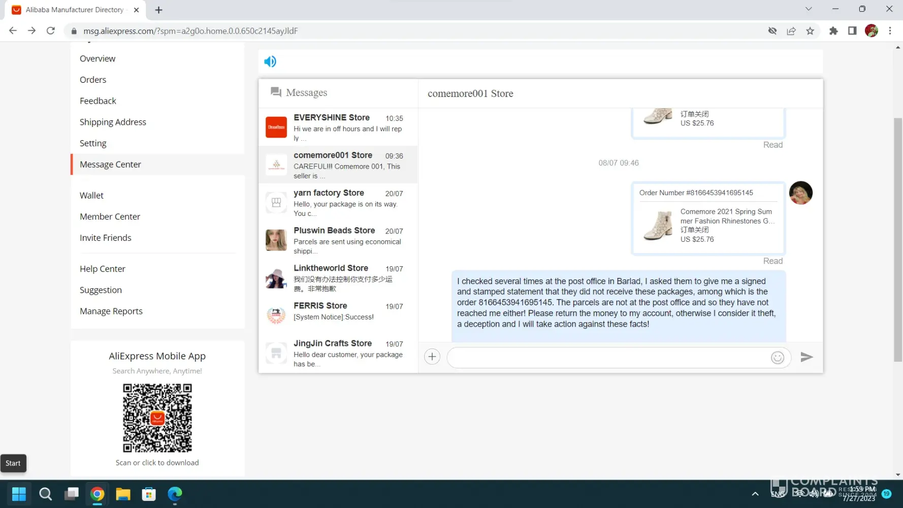 I believe that resolving this issue promptly and fairly is crucial for maintaining trust and confidence in AliExpress as a reputable e-commerce platform. I trust that you will treat my complaint with the urgency and attention it deserves and take the necessary steps to rectify this situation.