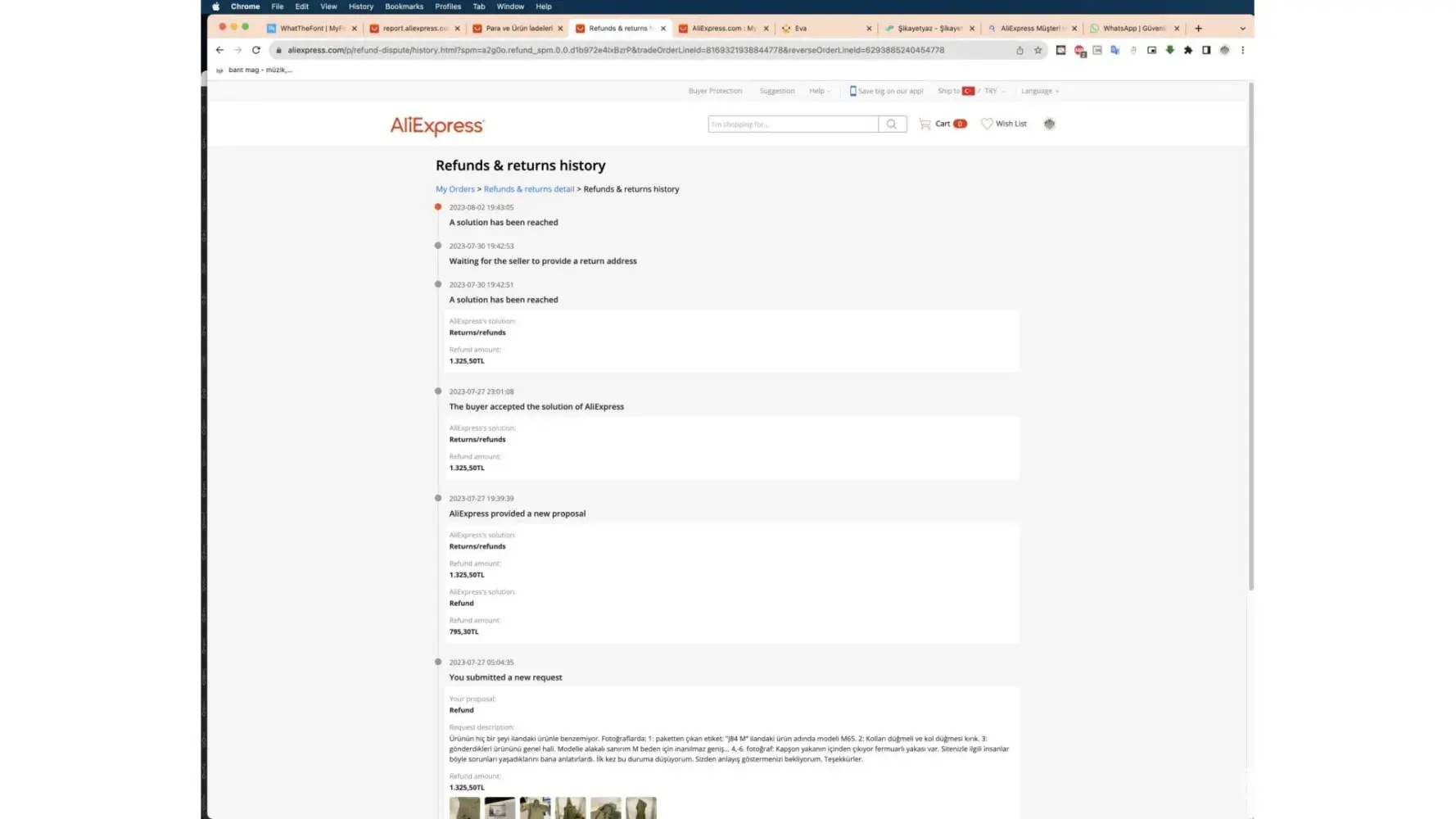 I ordered a hooded jacket on Aliexpress. 1300 TL + shipping tax cost around 1700 TL. My order number is [protected]. The seller sent an item I did not want, by the way, 1 month has passed. I also opened a dispute. They gave me two options. Returning my 700 TL defect money and keeping the product. And a full refund of my money. All of them are included in me except tax and shipping. Of course I chose the second one. After the return process, it says that the seller has paid the shipping fee, go to the cargo. I went to the PTT and they asked for 800 TL. I wrote this on Aliexpress. They say talk to the seller, I wrote to the seller. No answer. Aliexpress says pay the shipping fee of 800 TL, we will give you a 800 TL coupon. Seller or scammer, you decide on Aliexpress. If you're such a sucker, we sell coupons too. They said if anything happens, you talk to the seller. I talked to the customer representative for 30 minutes. I added 1-2 screenshots. You will see how true what I have written is. Also, the customer representative turned off the chat. It's like saying if you're going to get the coupon, get it, if you don't, don't close the shop. I couldn't get enough of my sucker.