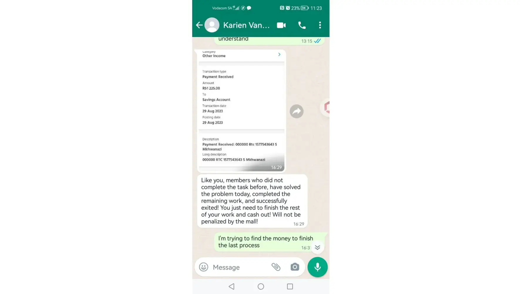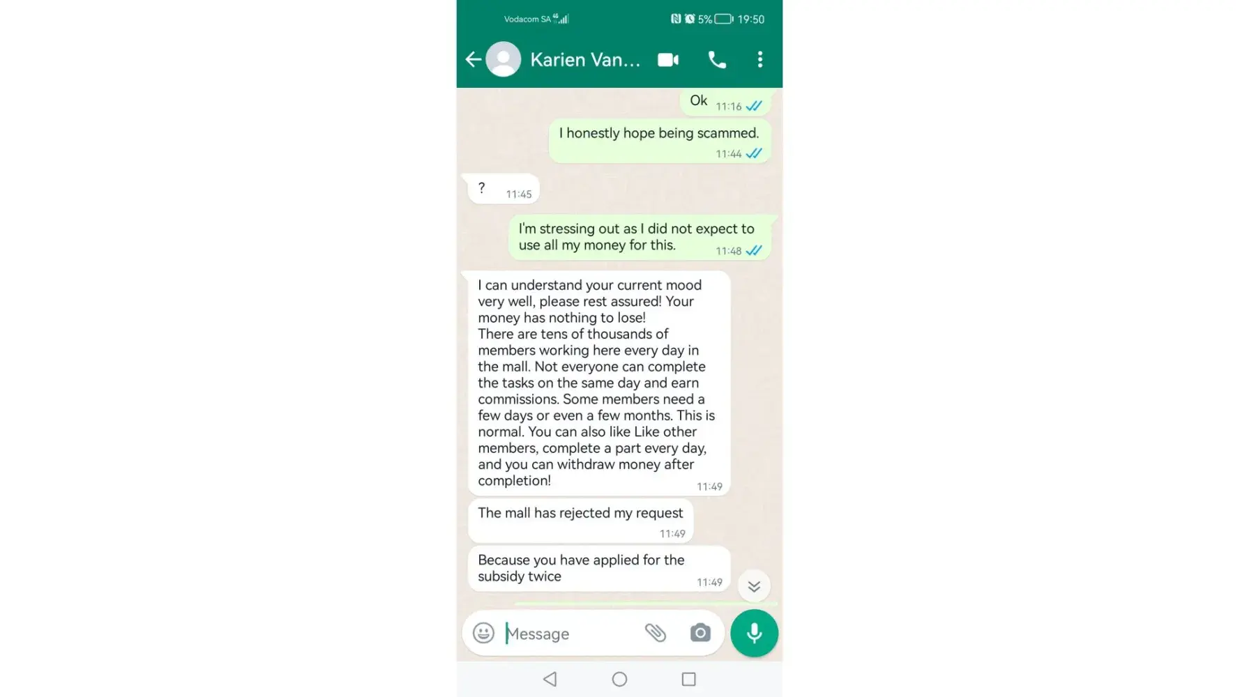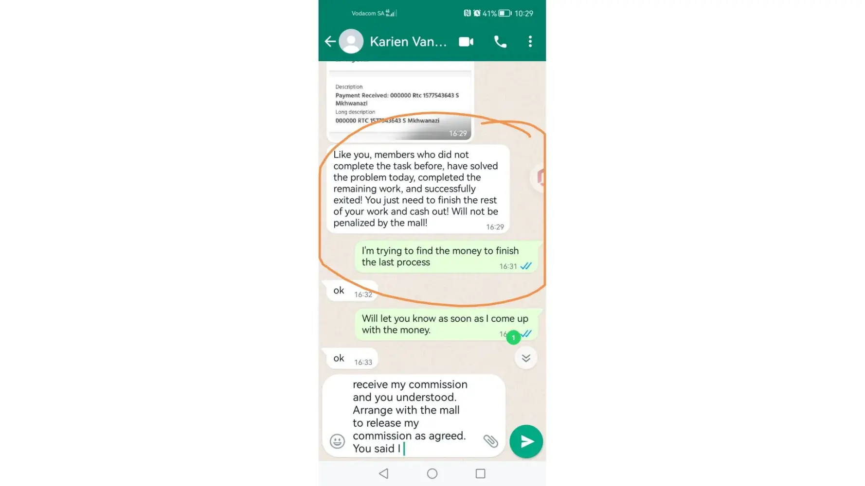 I have done the work on the platform with money I had to loan from family as I was told that I had to do the last order that I was struggling to get money to do. I then tried to withdraw my commission as agreed with the manager I work under and was blocked from withdrawing the commission I had earned to start the next task as agreed with my manager Karien.