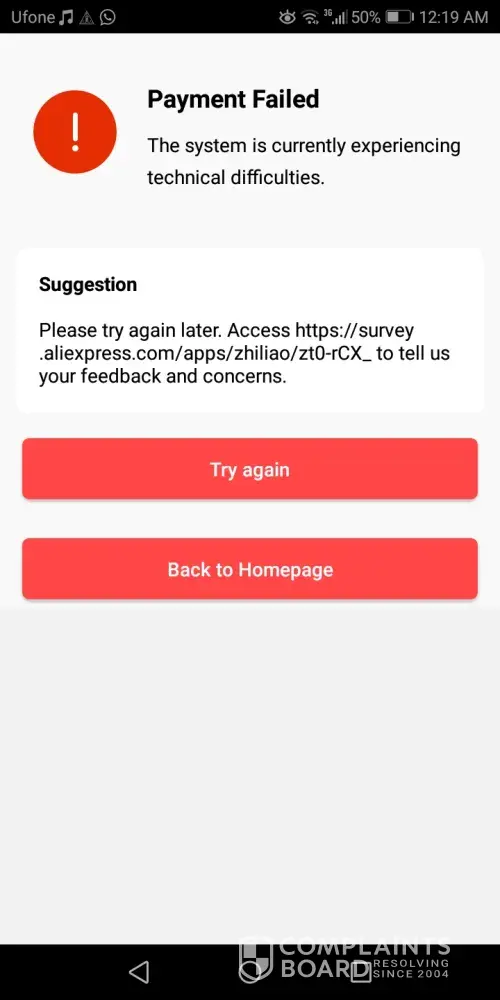 My payment completed through Credit card on 29/10/2019 time 12:27AM and it showed the message " Payment Successful. Thank you! We've received your payment." But no order is displaying in my aliexpress Dashboard.