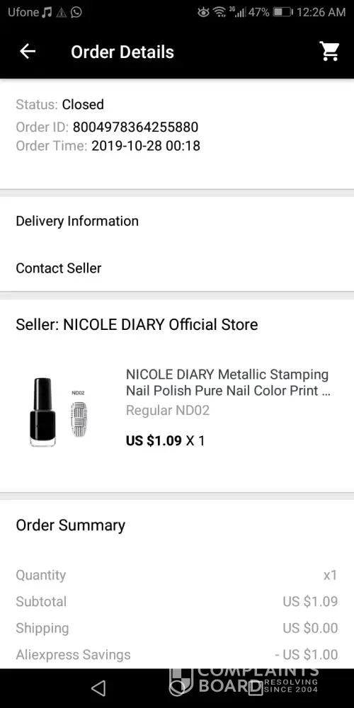 I ordered Nicole diary and born pretty nail polishes and they ended up charging me but closing the status of the product. After charging me for the product they end up saying some technical error. If you don't want to give me the product at least return my money! This is the most unprofessional attitude from aliexpress. My cousin had used this site for years and she asked me to sign up for it since they were giving deals and discounts and I did. I used my cousin's card to pay for the bill and every single time she'll get charged but the product status will be closed and no product will be shipped. I never thought aliexpress will loot me like this.