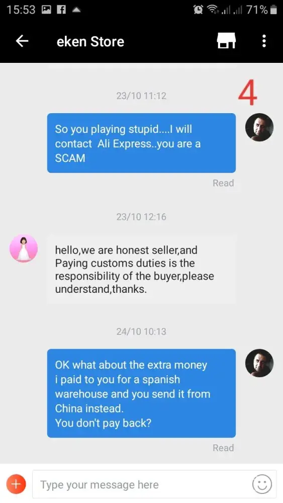 A seller by the name of Ann stubbornly insists that she will return the money if a dispute is opened. That is, she considers me an idiot. After all, she knows that I can not open a dispute. I even informed her why I could not do this. But she still advises me to open a dispute. I repeat, my order is inexpensive, it costs about $ 4, but I am very annoyed by the behavior of the seller, who