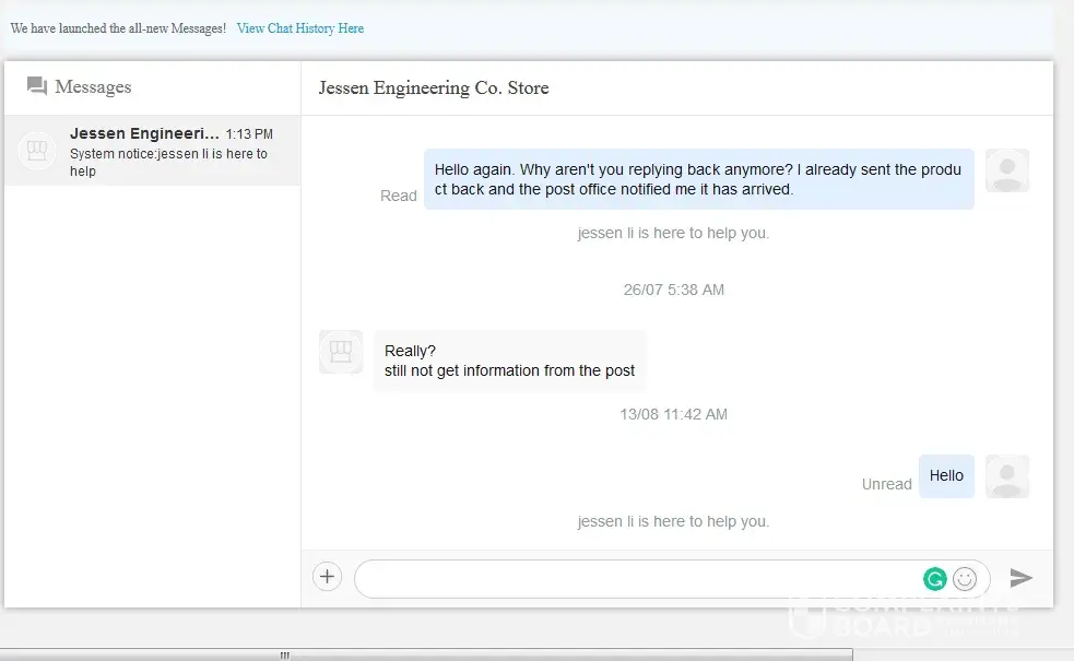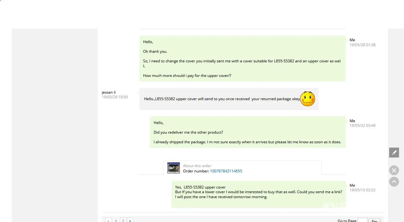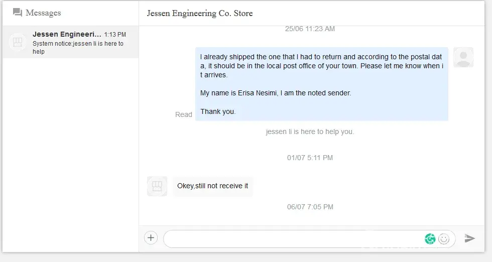 I ordered a product at Jessen Engineering Co.Store on April 18th, 2019. I got the product in time, but it wasn't the right size. The product was a computer case which was smaller than my computer, although I had specified the size to the seller. However, I sent them a message and they told me that they can change it once I send the right one.