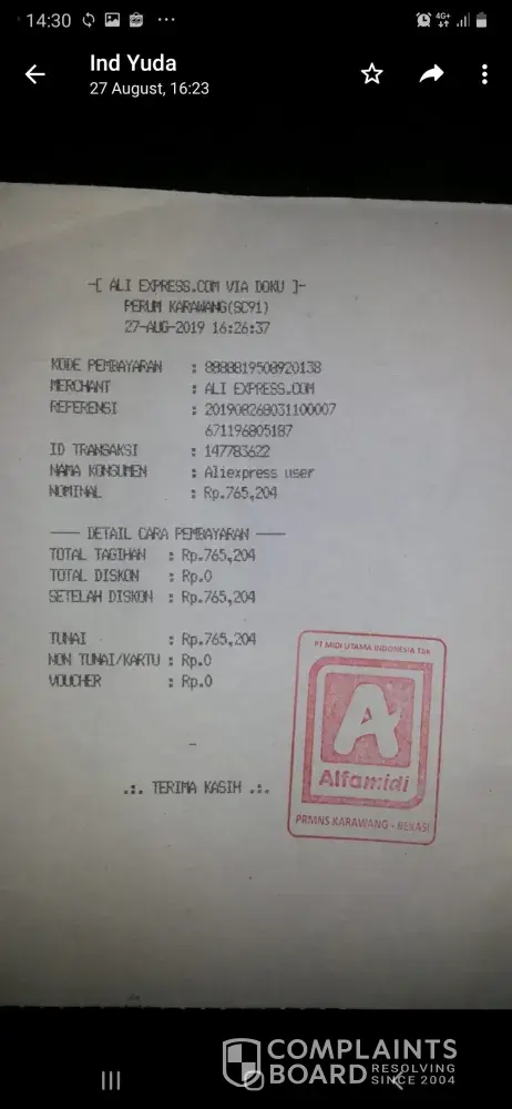 i paid at mini market at indonesia at 27 august 2019 at 16.26. i bought some products from some seller. But any one seller that I must pay again. Total payment its about $ 53.