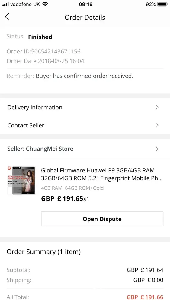 I placed this order online with aliexpress through that store on the 25th July 2018. My delivery was supposed to arrive by the 23rd of September 2018. I did not receive the item by the 8th of October and when i tried to pen a dispute, the supplier said that delivery to south Africa takes a long time. Now i see the time has passed and aliexpress will not allow me to open a dispute. The tracking information only changed on the 10th of October and it is still not with me and it has been 3 months!