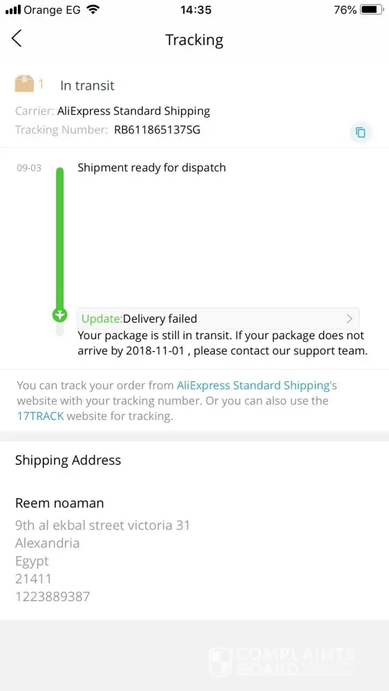 On Oct 7, I contacted Aliexpress customer service and provided the evidence from post office. Aliexpress customer service created another appeal and promised to solve it asap. However, nothing happened after that!