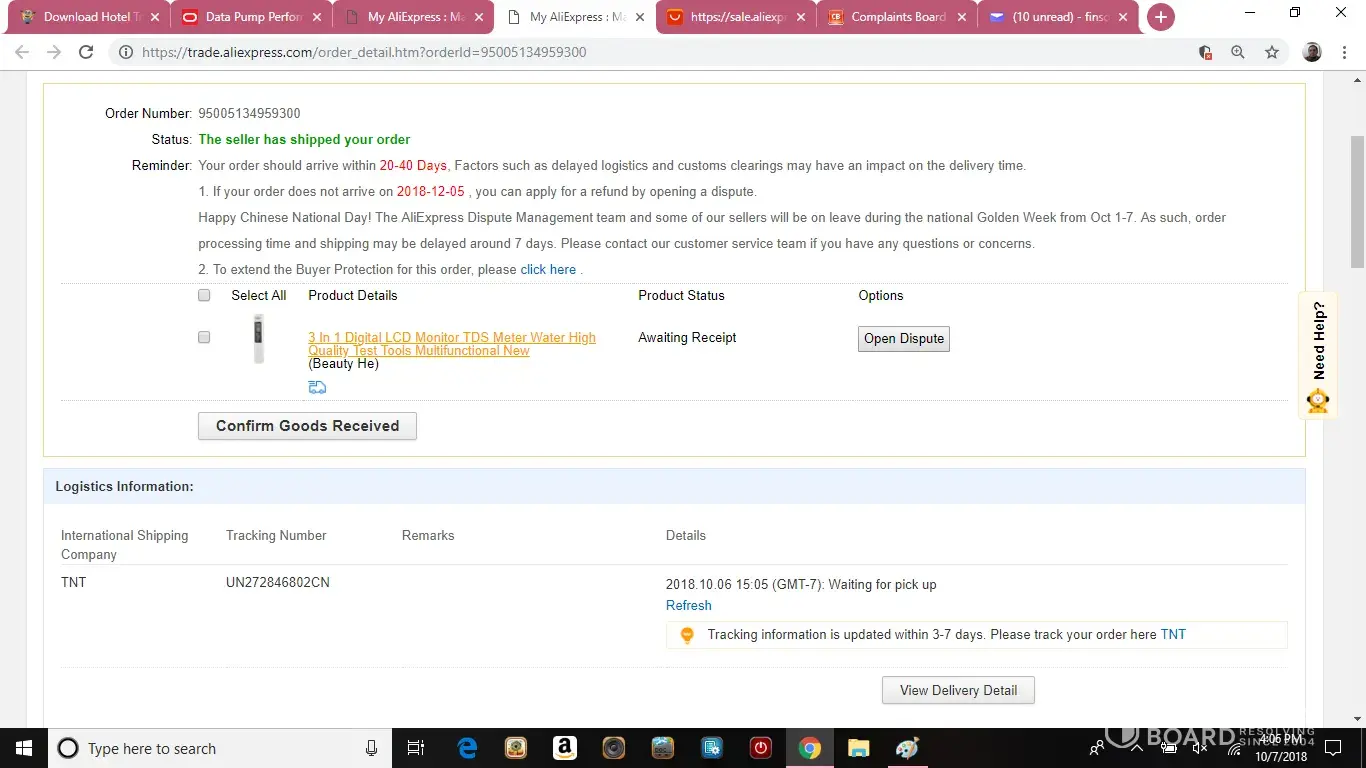 Now the time of dispute has passed by. How can it pass by when there was no delivery registered on the product?