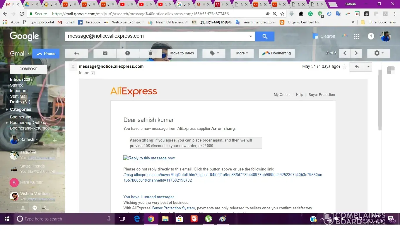I order smartband from aliepxress on may 15 2018 I received product on 27 may 2018, I received manufacturing defective product, I apply for a refund process with the picture they reject my application, so once again appeal for it they rejected again and said no evidance for prove my side, so I taken video and chat with the representatives and send the videos the representatives they told me they have note it down on their system. But after that also I won't get any result.in the meantime I contact seller he also not give proper response to me. I chat with more than 10 representatives of aliepxpress but I won't get money back. One representative apply for a refund on 5th june and say wait for 10 working days, I did that and ask today 19 the june the other representative told me the refund process is taken on 13 the june only so you need to wait for 10 working days upto 27th june. Please take the action aginst aliexpress to solve this issue as soon as possible. Here I give the link for video evidence what I submit to aliecpress represntative.