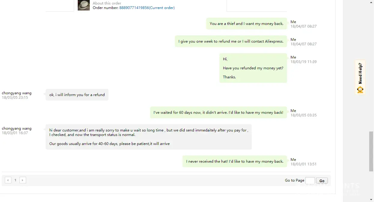 I don't even find the place to complain about in Aliexpress site...