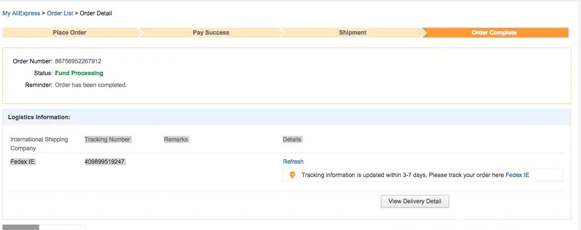 I placed an order to aliexpress