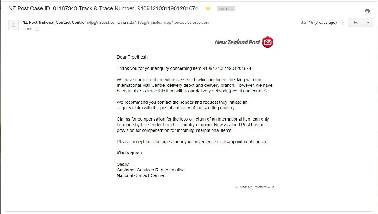 The courier has lost the package.