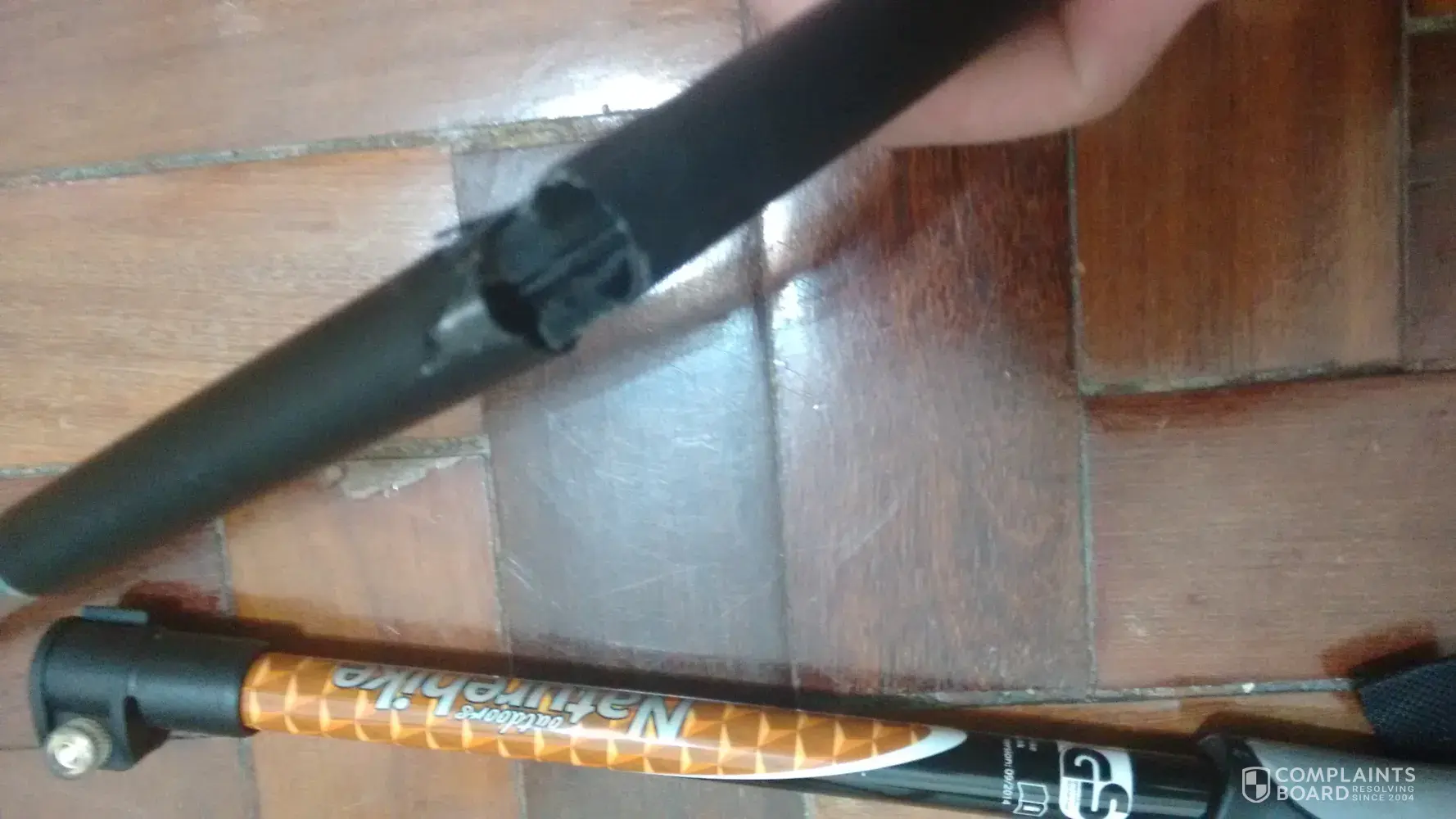 On June 6th, 2017 I have bought 2 Naturehike walking sticks (order number [protected]). The produtcs, at first glance, seemed OK and I had no major problems assembling them for use. Last weekend I went to use them for the first time in a regular hike near my city, and the result was complete disappointment with Naturehike products. During the ascent hike, one stick simply broke close to its bottom and I lost the tungsten tip in the bushes. Furthermore, when hiking down, the other stick broke near the middle when just bearing myself, with no excessive load (I weigh 75 kg). Also, two of the cords used to join the rods together, had broken during the activity.