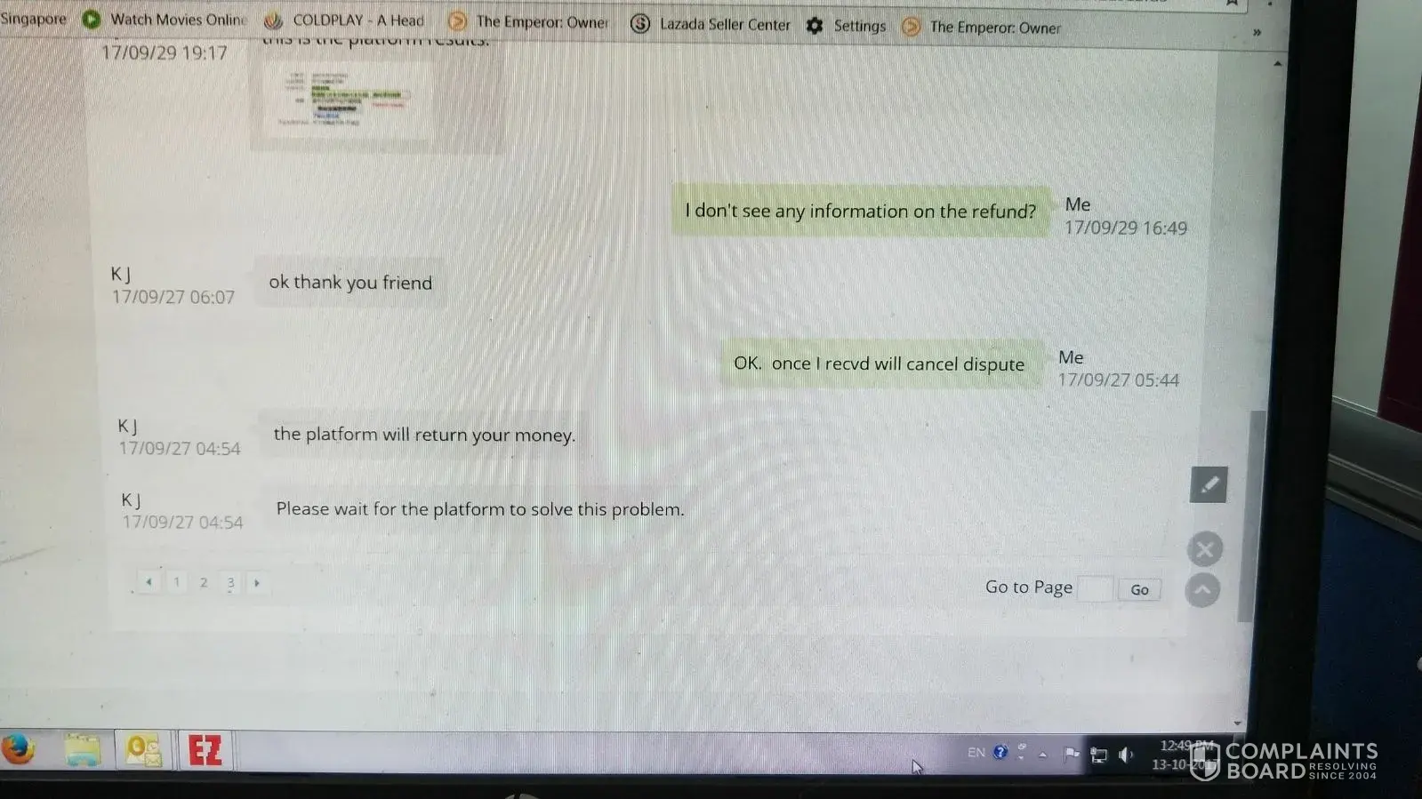 You may check yeh history of complaint of this item where hours and if times has spoken to your complaint receiving girl in the app.