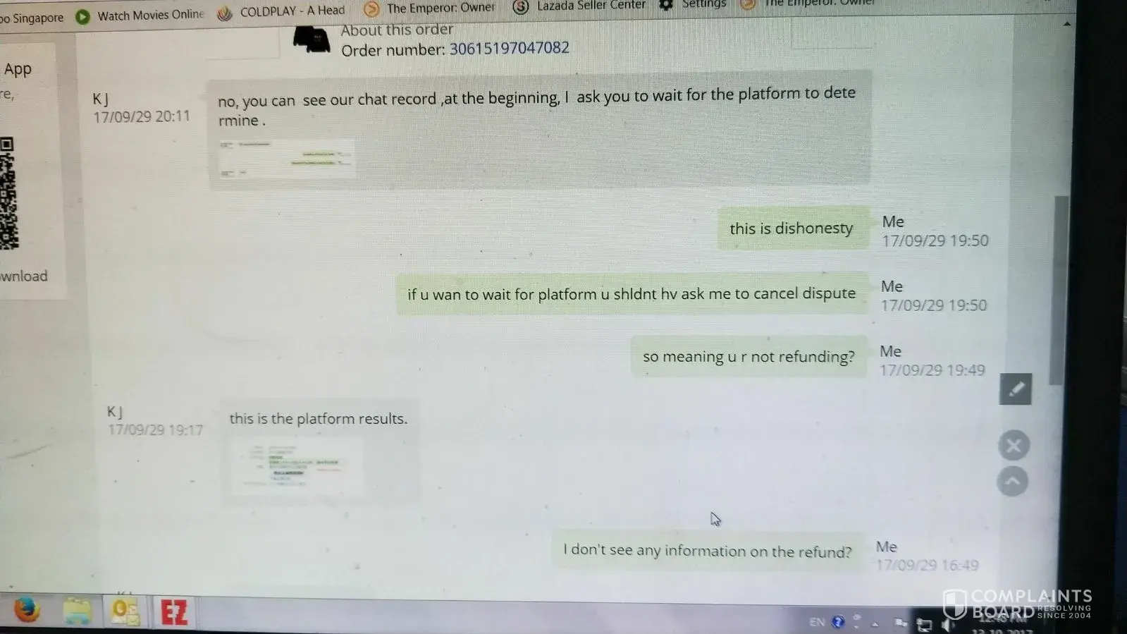 after customer service starts writing to him to response, seller took down this sales from his store. i feel so conned by seller thinking he will be refunding me and i didnt reply to case mgt team. and now case mgt team when i reply to them its is always a return mail.