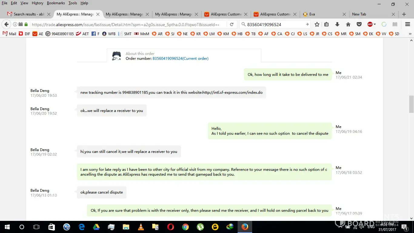 You may open a dispute for the order before: Tue Aug 08 00:18:41 PDT 2017