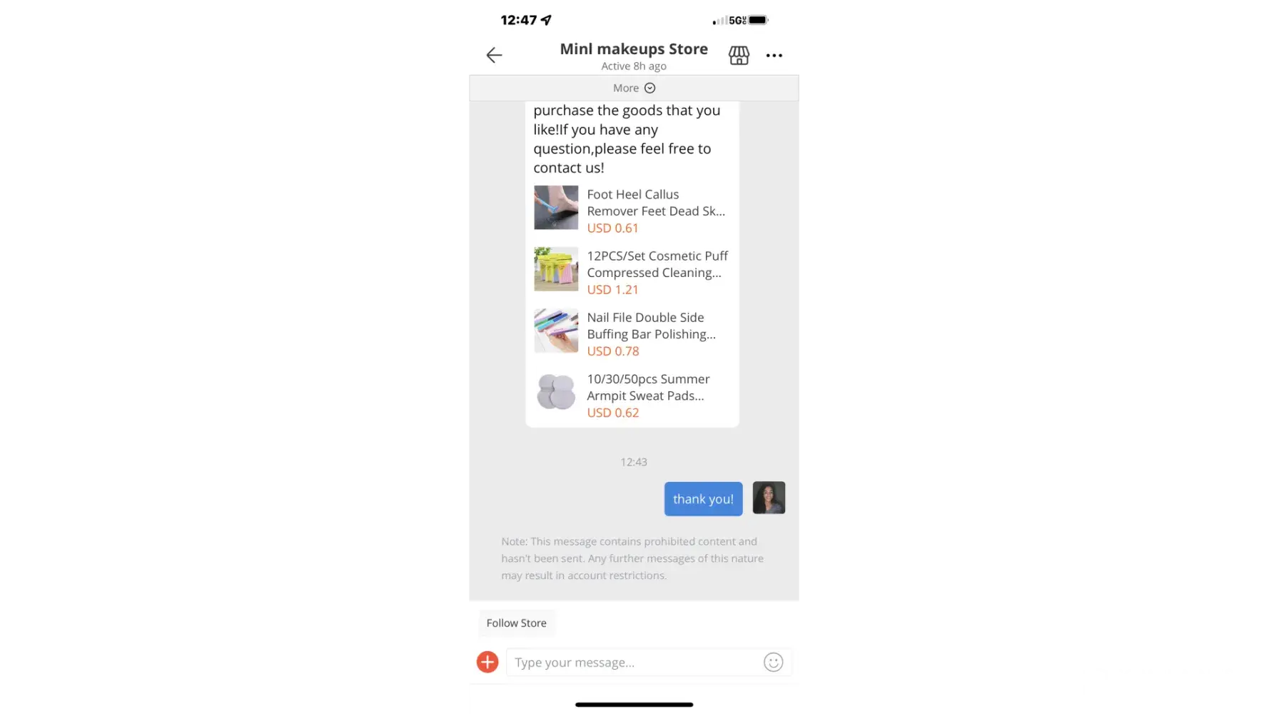Hello. I am buying clothing for my own store and i by from different sellers on Aliexpress. The problem is that i can't text with them because the message center won't let me send any messages, not even "thank you". It keeps saying this: "NOTE: The message has not been sent. Please be aware that you are required to comply with local laws & policies."