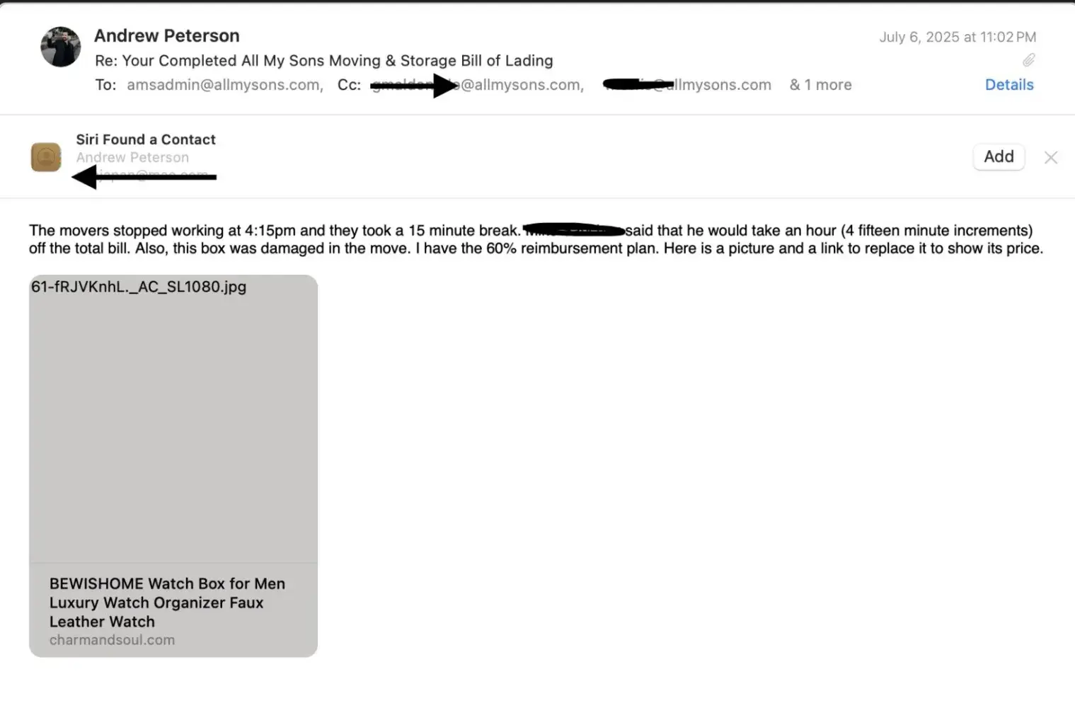 If you value safety, integrity, and basic accountability from the people you allow into your home, I strongly recommend avoiding All My Sons Moving & Storage.