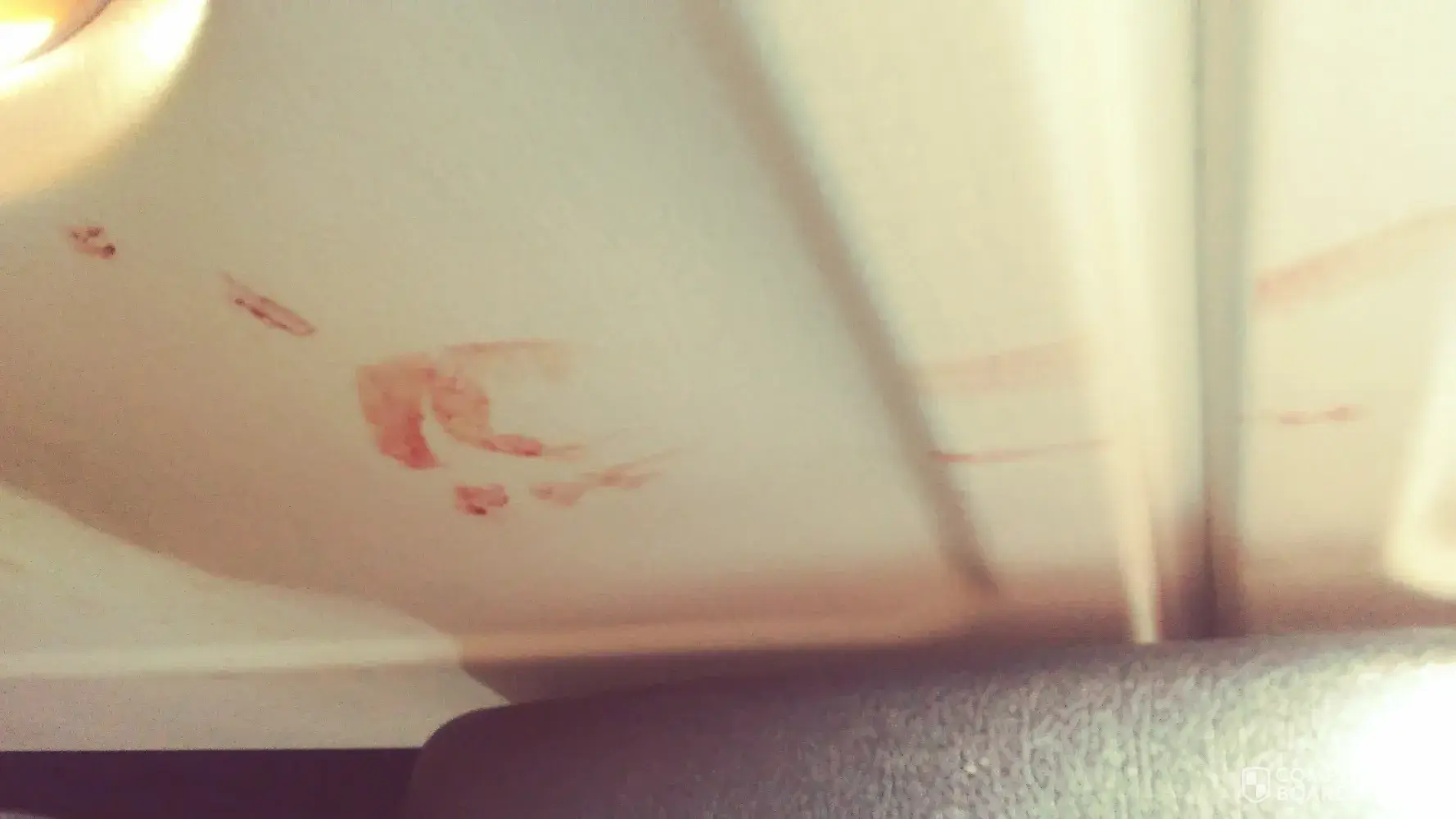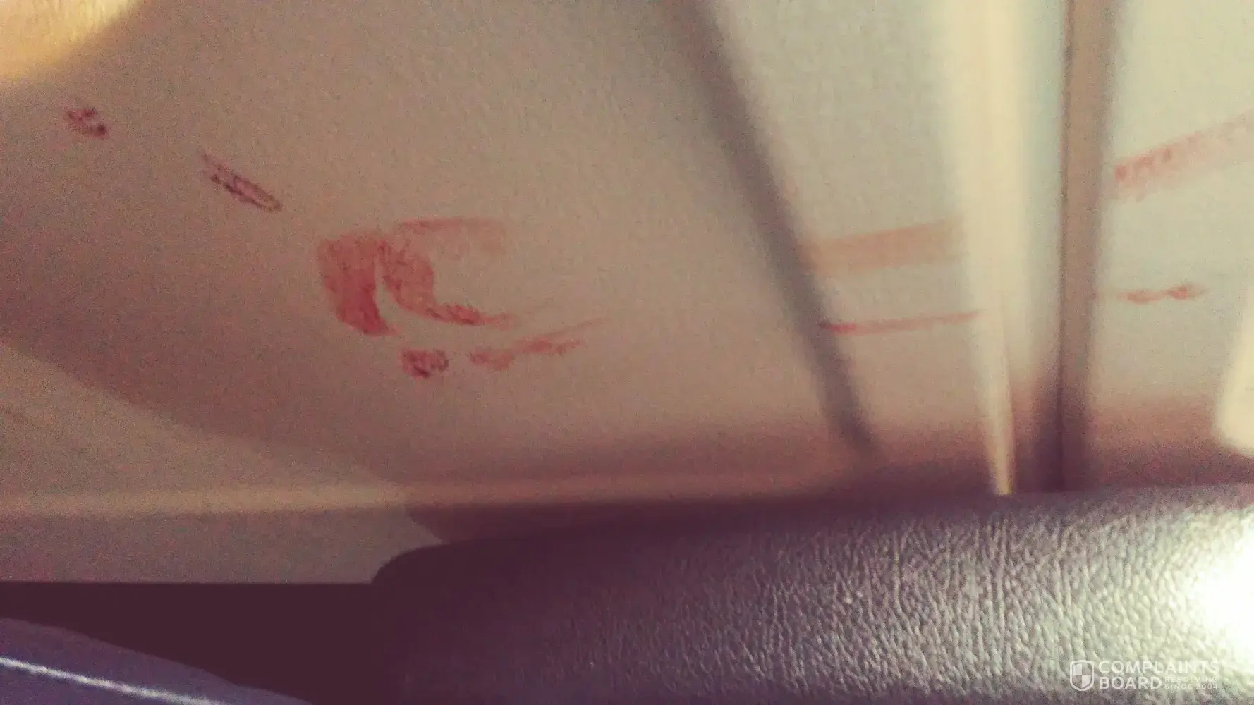 I'm a frequent. User of allegiant airlines. When I boared plane this past july. When I say down noticed blood all over window wall and I lifted my arm and it we all over arm rest. I called the stewardess and told her I needed to move she said I couldn't. She came back with wet paper towel. No bleach no alcohol no nothing to kill any diseases. She wiped it up and left.. That was not sanitary or professional. I've written and called allegiant but they will not respon