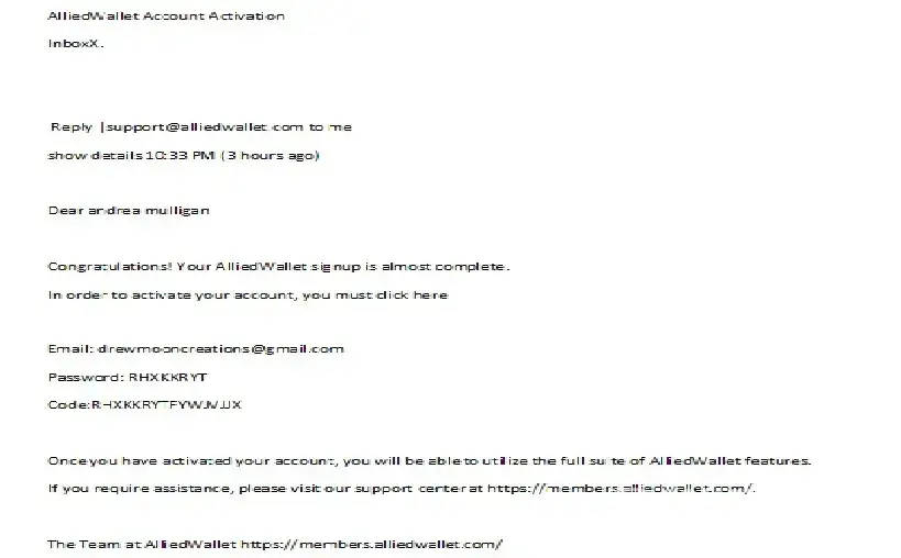 If you ever receive anything from Allied Wallet it is probably a scam and they have your details and money will be taken from your account.