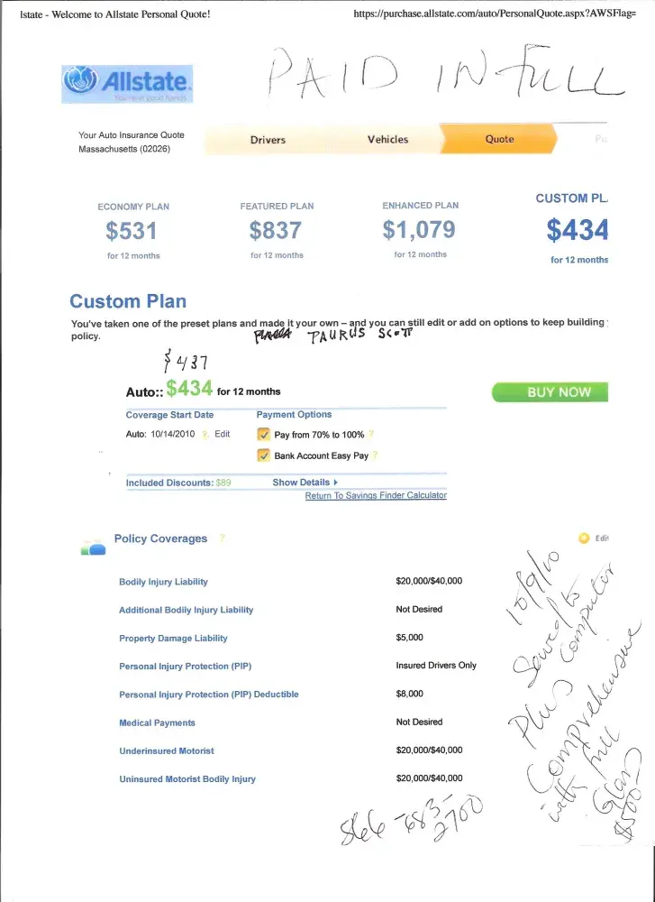 What I am getting to, is beware of of this company quoting you a price for auto Insurance, Allstate will quote a price with out all the information they need. They will also try to get you to pay by credit card up front, This makes it more difficult to deal them after, since they already have your money. They will come back at a later date with adjustments in your policy, which will always cost you more money . Mark Pease