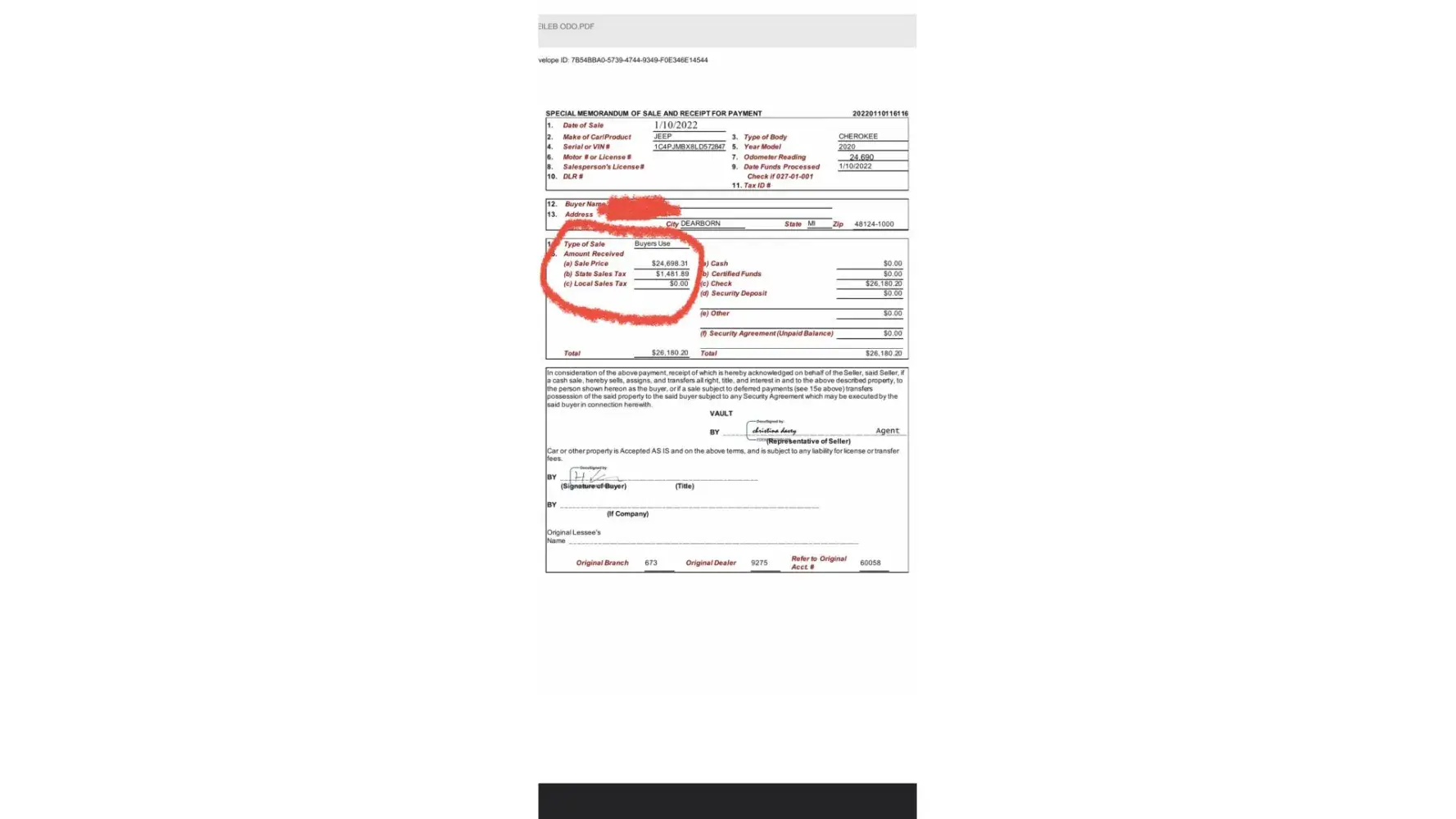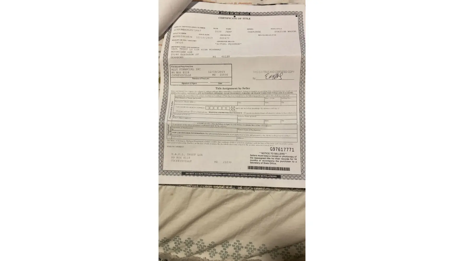 I leased a Jeep Cherokee back in Aug 2019 from Sterling Heights Dodge Chrysler Jeep and Ram located at 40111 Van d*e Ave. Sterling Heights, MI 48313. Ally was the bank that held the financing for it, which was setup at the dealership. It was a 2 year lease.