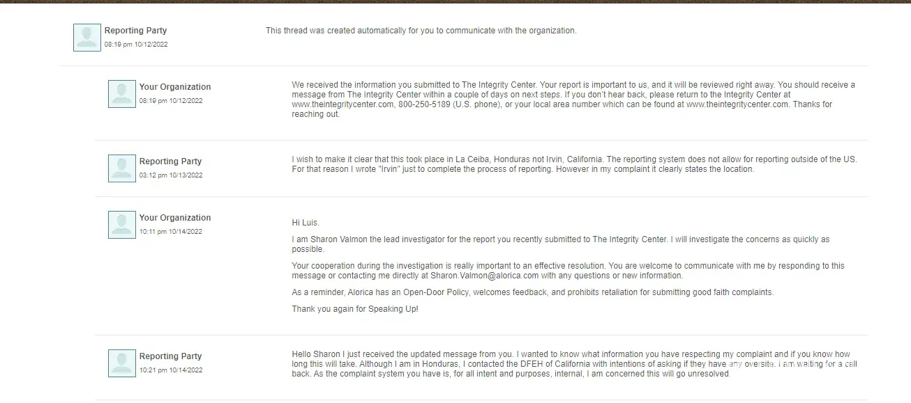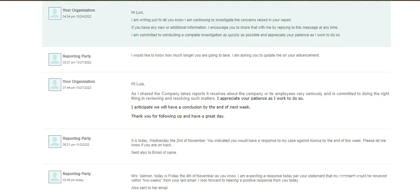 Read full complaintAlorica complaints: history and resolution overview