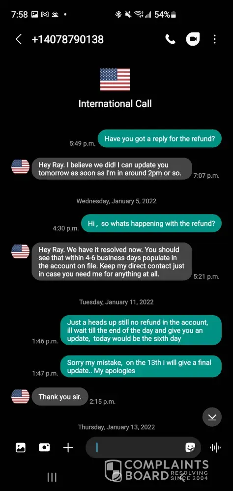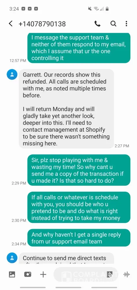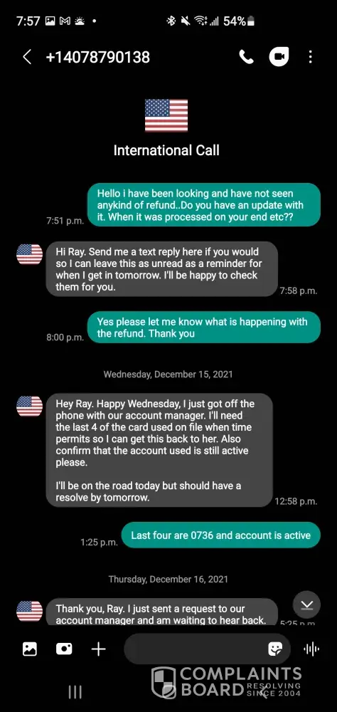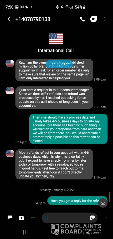 Attached is the payment for a second charged after finding out it was a scam & contacted my bank to seized the transaction. Since the bank did their investigation & learnt that I did received my merchandise, they reversed the payment to the company. This was a double charged back in July 2019, it been over 5-6 months & still cant get my refund from albert (the CEO) attached also is screenshots of recent text messages, stating that he did refund my money & it's in my bank account! But its not..